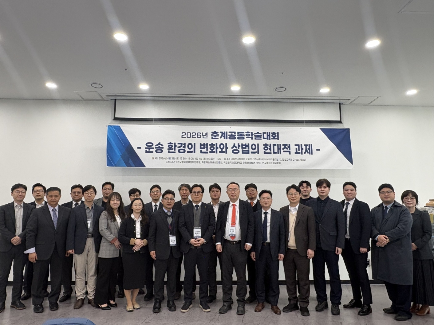 (사)한국법이론실무학회(회장 홍태석)와 한국형사법무정책연구원(원장 정웅석), 자동차손해배상진흥원(원장 하대성), 한국해양대 한중해사법연구센터(센터장 정 대)는 2026년 4월 3일(금) 국립 한국해양대학교 도서관 라이브러리홀에서 ‘운송 환경의 변화와 상법의 현대적 과제’를 주제로 춘계공동학술대회를 개최하였다.