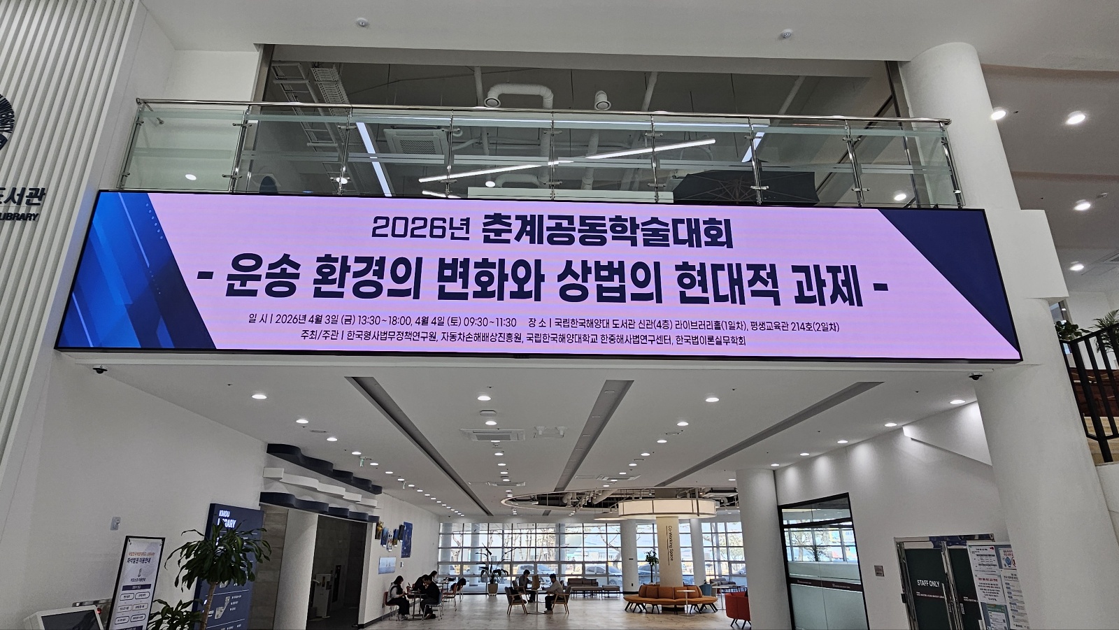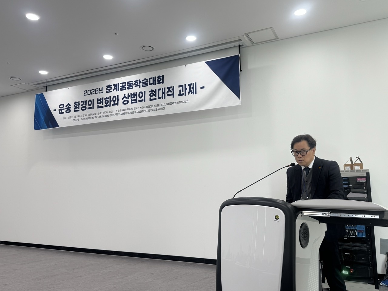 (사)한국법이론실무학회(회장 홍태석)와 한국형사법무정책연구원(원장 정웅석), 자동차손해배상진흥원(원장 하대성), 한국해양대 한중해사법연구센터(센터장 정 대)는 2026년 4월 3일(금) 국립 한국해양대학교 도서관 라이브러리홀에서 ‘운송 환경의 변화와 상법의 현대적 과제’를 주제로 춘계공동학술대회를 개최하였다.
